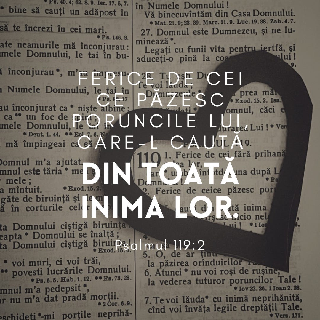 "Ferice de cei ce păzesc poruncile Lui, care-L caută din toată inima lor, care nu săvârșesc nici o nelegiuire și umblă în căile Lui." (Psalmul 119:2)